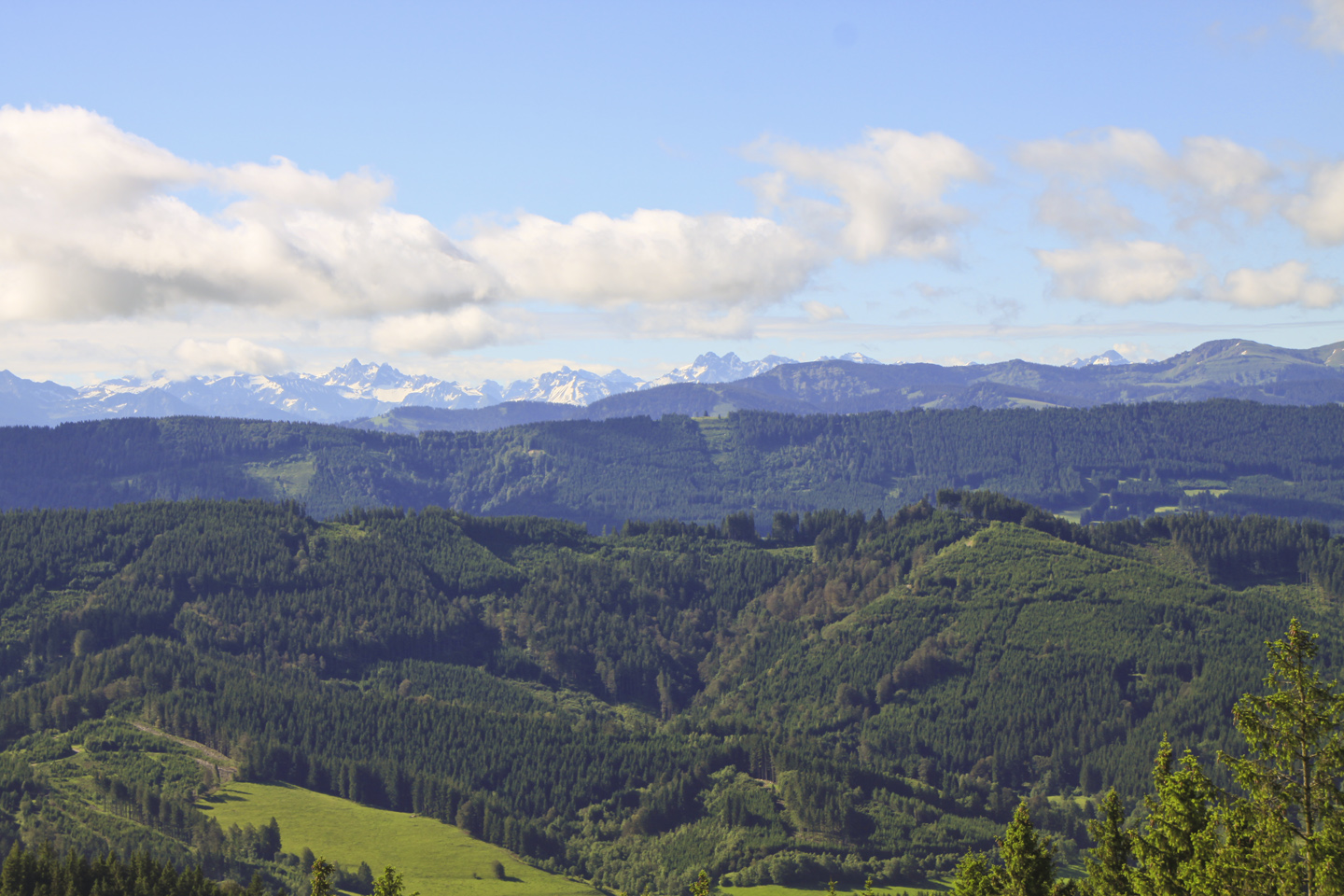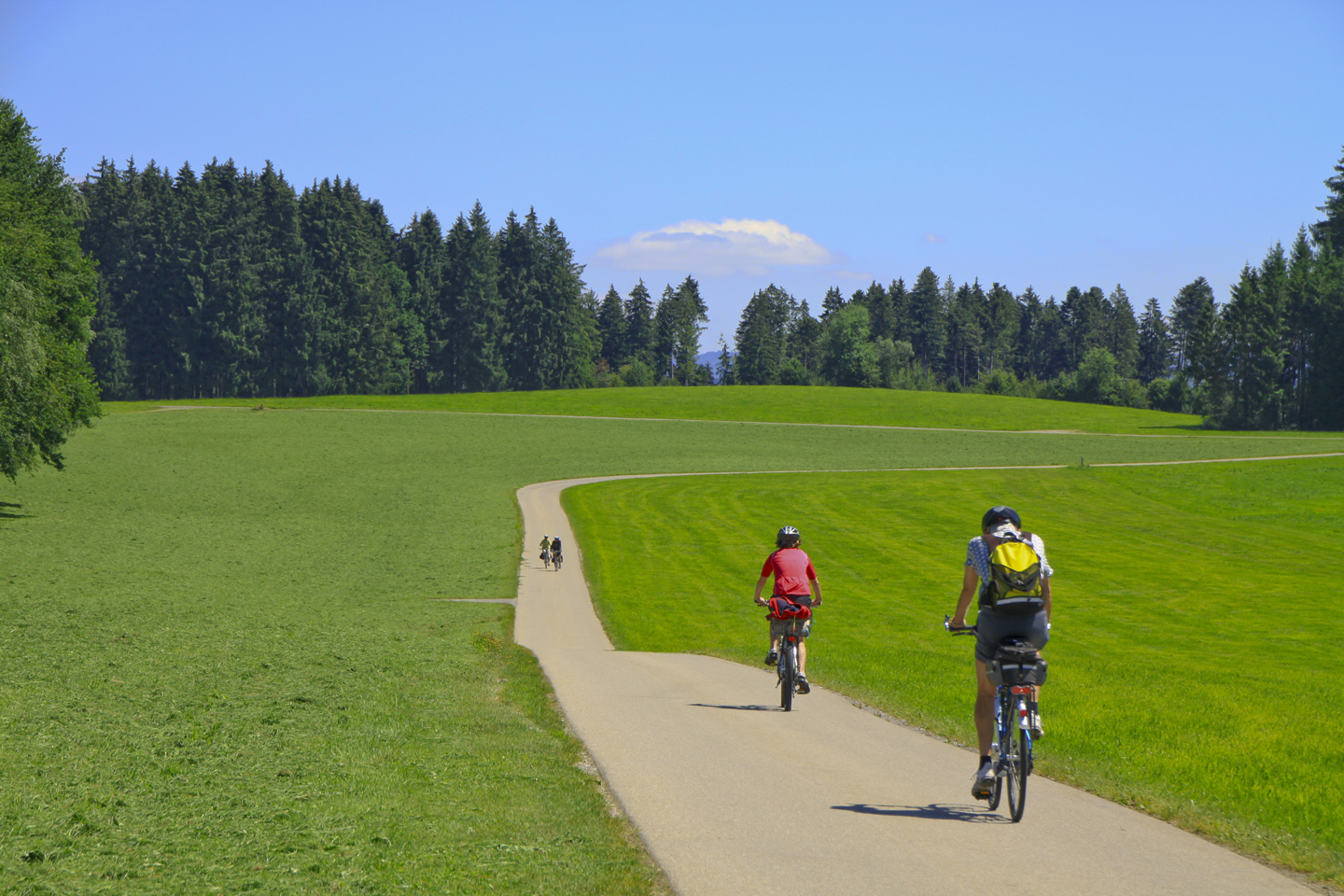 Auf der ersten Etappe des Bodensee-Königssee-Radwegs, die vom Bodensee, dem “bayerischen Meer”, aussichtsreich durchs hügelige Ostallgäu in den bekannten Wintersportort Oberstaufen hinauf führt.