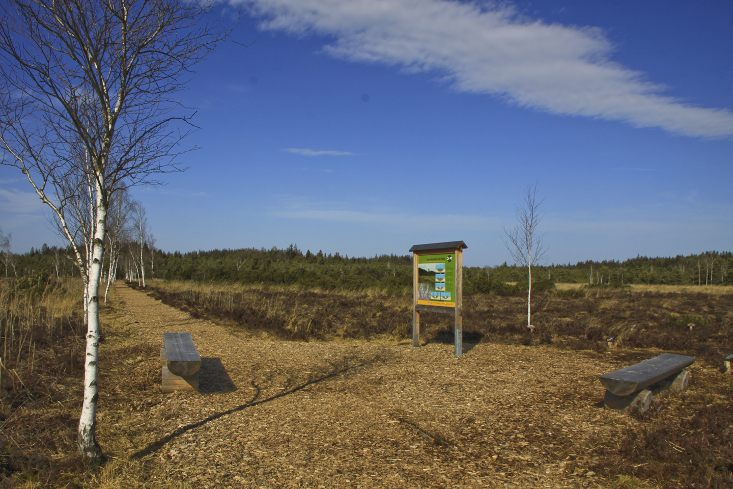 Am Hartseeufer entlang stoßen wir auf ein weiteres Brückchen, das den Hartsee vom Kautsee trennt, und biegen danach scharf rechts ab. Wir passieren einen verfallenen Steg am Einbessee, verlassen kurz darauf den breiten Weg und biegen nach links in einen schmäleren Pfad ab, der nahe am Ufer des idyllischen Sees entlang führt. Bei der nächsten Verzweigung halten wir uns an die Markierung Stephanskirchen, bleiben geradeaus und wandern am links auftauchenden Kesselsee vorbei.