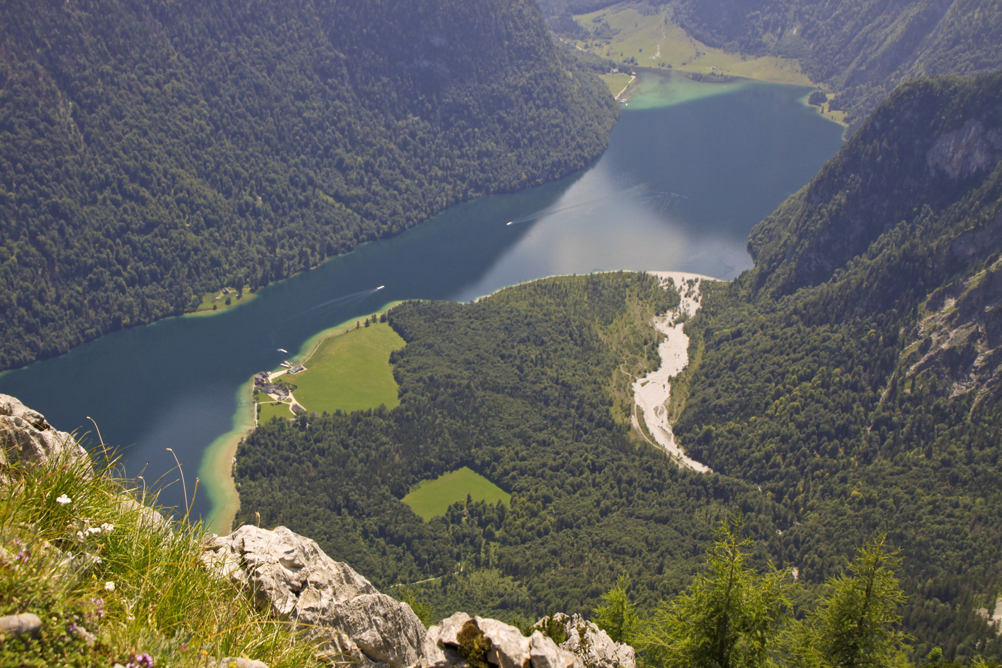 Ein grandioser Aussichtsberg zwischen Watzmann und Königssee mit einem steilen und kehrenreichen, aber (bei trockenen Verhältnissen) gefahrloser Anstieg durch eine üppige Latschenvegetation. Eine schmiedeeiserne Gipfelglocke ergänzt das obligatorische Gipfelkreuz am Mooslahnerkopf.